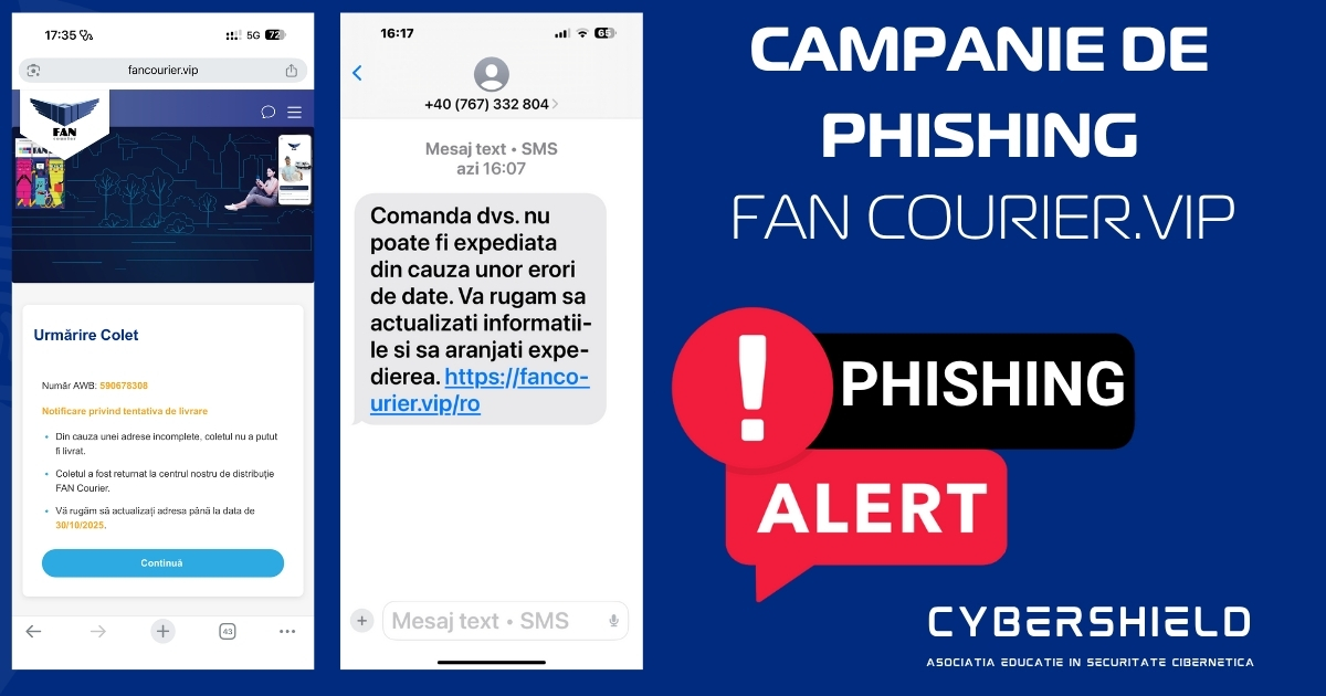 În ultimele zile, circulă o nouă campanie de phishing care se folosește de imaginea FAN Courier pentru a fura datele personale și financiare ale utilizatorilor. Atacul este derulat prin SMS-uri care par oficiale, dar provin de la numere necunoscute, fără eticheta standard de expeditor și cu linkuri către domenii suspecte.